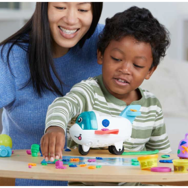 Welcome aboard the Play-Doh Airplane Explorer Starter Set! This children’s aeroplane toy has lots of ways to play with Play-Doh modelling compound and imagine their own adventures around the globe – no passport required. Little learners can make and match objects on the playmat, make pilots and passengers to ride the toy plane, and so much more with three Play-Doh tools and four different compound colours. Imagination toys like this Play-Doh set can help children foster an interest in their communities and the world around them while they practice fine motor skills and build their creativity.